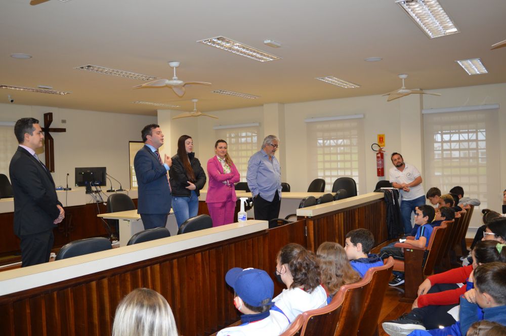 Na sequência, os estudantes tiveram a oportunidade de conhecer a sede do Fórum, entendendo mais sobre o interior do local, onde foram acompanhados e instruídos pelo Juiz da Comarca, Márcio Iglesias De Souza Fernandes, que com seu bom humor e carisma conquistou a criançada.
