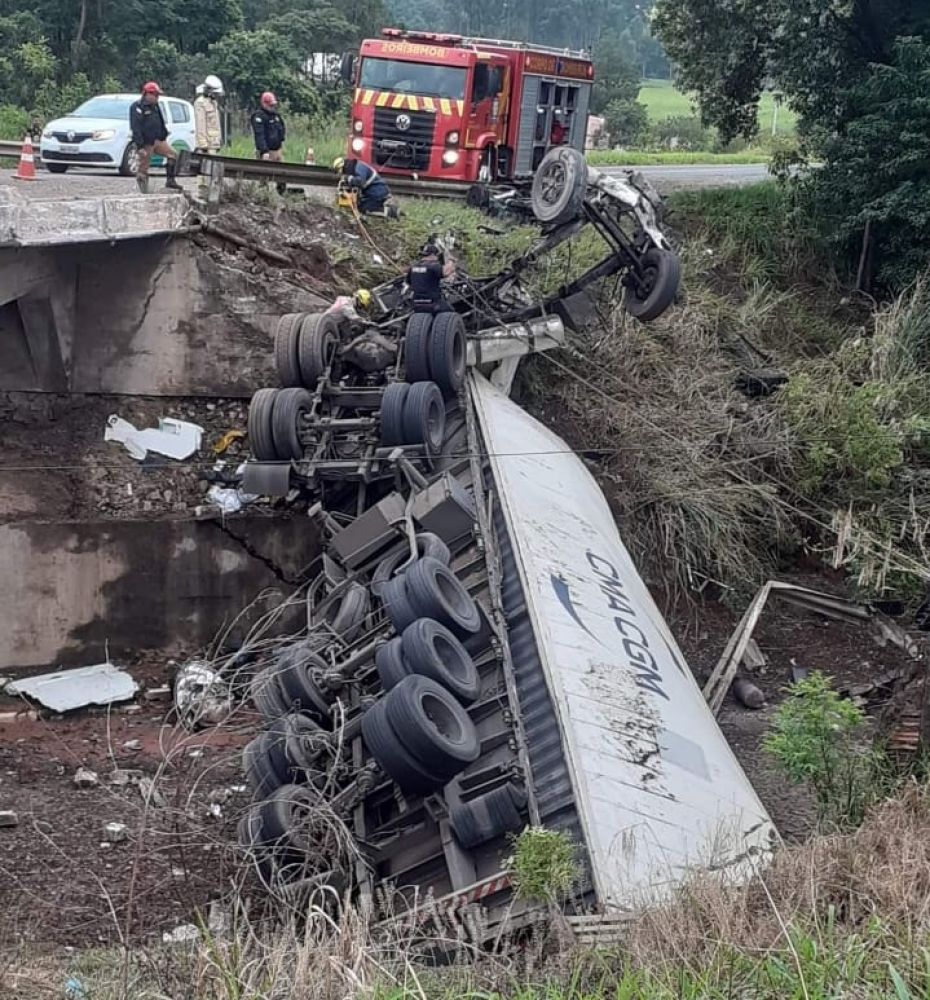 De acordo com informações da Polícia Rodoviária Estadual, a situação envolveu um caminhão Volvo com placas de Camboriú/SC. O veículo transitava pela rodovia no sentido Sengés a Itararé/SP quando o motorista acabou perdendo o controle da direção, saiu da pista e tombou em um viaduto.