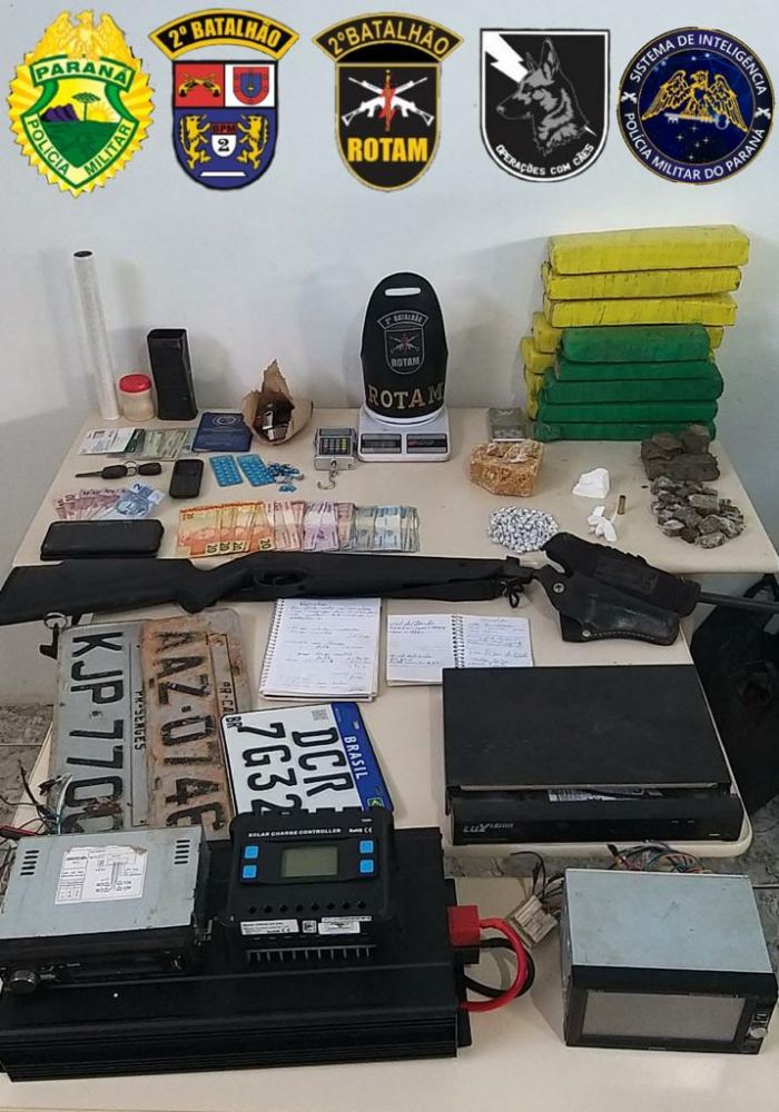 No mesmo dia, os agentes apreenderam mais de 1 kg de maconha, 47 pinos de cocaína, joias que seriam de um assalto a mão armada, embalagens de drogas e um caderno com anotações referentes ao tráfico. A ação aconteceu no bairro Aparecidinho II em Santo Antônio da Platina. Em outro bairro, um homem foi preso com 112 gramas de maconha, 19,9 gramas de cocaína, celulares, dinheiro, balanças e um caderno com anotações referentes ao tráfico.