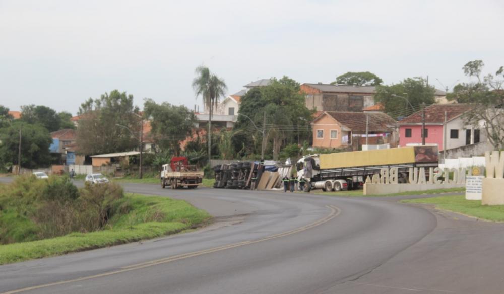 Carreta tomba na PR-092 no trevo de Wenceslau Braz
