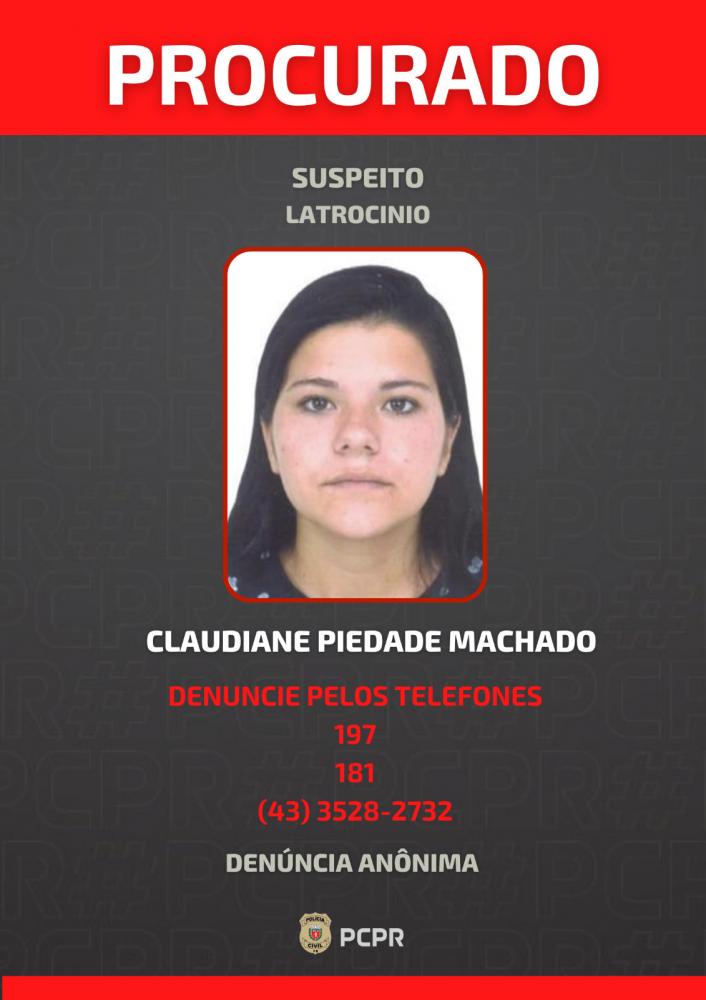 Na sequência, os agentes deram início as buscas de outros três suspeitos. São eles Claudiane Piedade Machado, suposta companheira de Bronqueti, Lucas Aparecido dos Santos Dias e Claudeci Ferreira Lima Júnior. Os três são considerados foragidos da Justiça. Informações que levem ao seu paradeiro podem ser repassadas de forma anônima através dos telefones 197, 181 ou (43) 3528-2732. Este último conta com atendimento via Whatsapp.