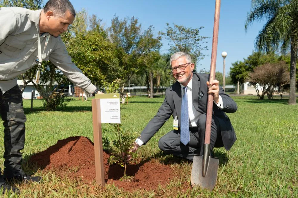 Embaixador plantou uma muda de jabuticaba, afirmando ser sua árvore brasileira preferida. Foto: Sara Cheida/Itaipu Binacional