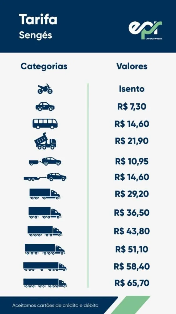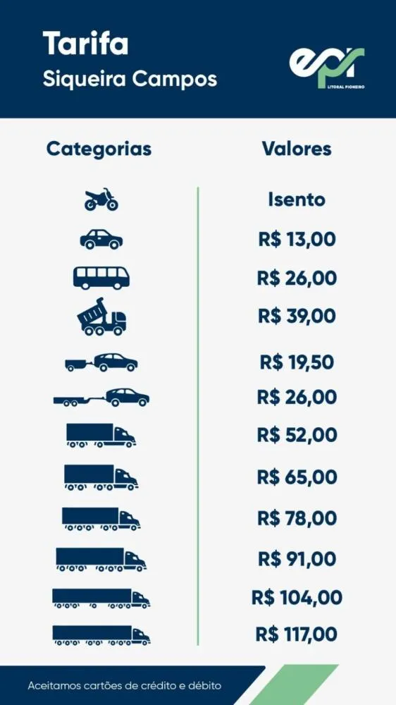Enquanto a nova praça de Sengés começa cobrando o valor de R$ 7,30 (carros utilitários), Siqueira Campos terá o valor quase que dobrado, taxando o motorista em R$ 13,00.