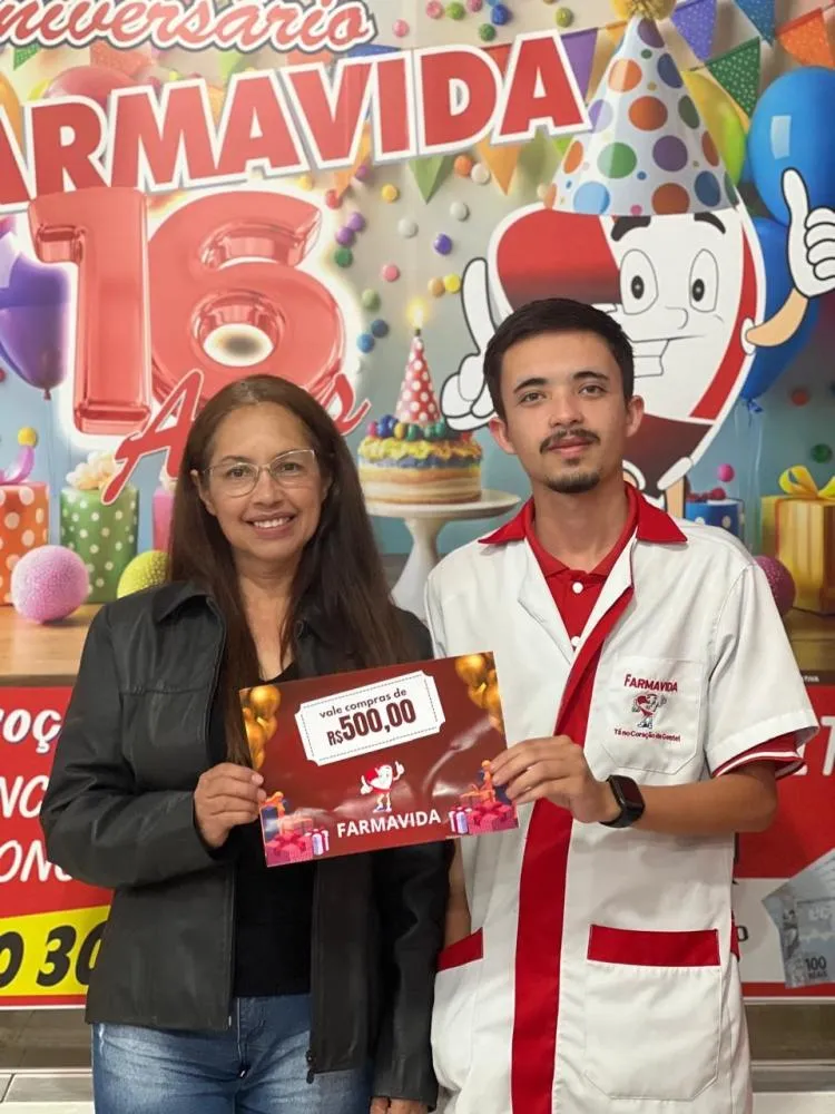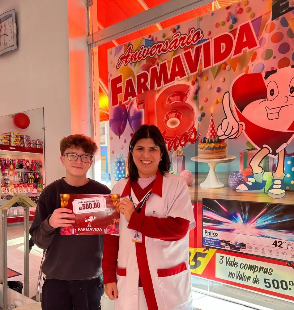 WENCESLAU BRAZ - No mês de junho, a Farmavida, a farmácia mais tradicional de Wenceslau Braz, celebrou a chegada de seus 16 anos de história com promoções e sorteios inesquecíveis. Para comemorar a data, a farmácia organizou uma campanha especial para agradecer aos seus clientes fiéis por fazerem parte de sua trajetória, oferecendo prêmios em vales-compra, um prêmio especial e diversas promoções ao longo do mês.