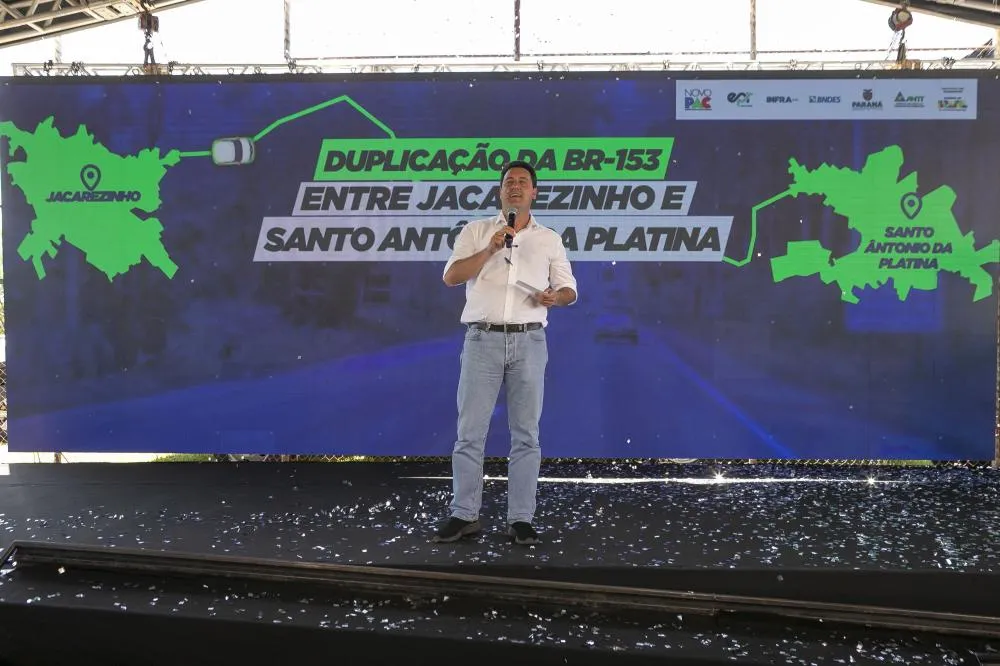 O governador Carlos Massa Ratinho Junior participou, nesta sexta-feira (28), do lançamento oficial das obras de duplicação da BR-153 entre Jacarezinho e Santo Antônio da Platina — um dos trechos mais estratégicos para o desenvolvimento do Norte Pioneiro. Serão quase R$ 600 milhões investidos pela EPR Litoral Pioneiro, dentro da contrapartida da concessão do Lote 2, com previsão de conclusão no primeiro bimestre de 2027.