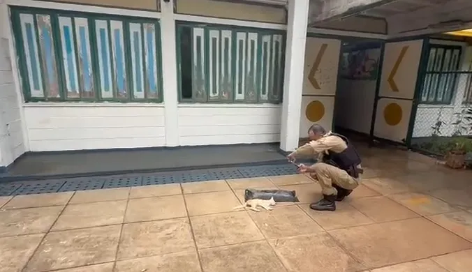 Já na manhã da quarta-feira (04), a equipe da PM foi novamente acionada para prestar atendimento a uma ocorrência de maus-tratos contra gatos, desta vez, em uma escola do município.